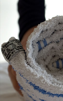 Mehreren Lagen Tücher, die eng zusammengerollt einen "Trichter" ergeben, werden mit heißem Wasser gefüllt. Anschließend wird die Heiße Rolle vorsichtig auf die zu behandelnden Körperstellen aufgetupft und auf diesen sanft massierend hin und her gerollt.